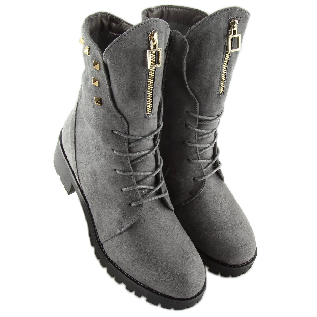 Tyylikkäät työsaappaat harmaassa HX-015 Greyssä ovat täydellinen valinta jokaiselle naiselle, joka arvostaa sekä mukavuutta että muodikkaaa ulkonäköä. Hienovaraisten mutta tehokkaiden koristeiden, kuten nastat ja koristeellisen vetoketjun kielessä, ansiosta nämä saappaat lisäävät rock-aksentin mihin tahansa tyyliin.
