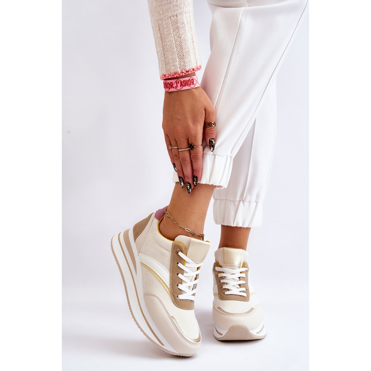 Yksityiskohdat: PG1 Hermain Beige Wedge -lenkkarit valkoinen