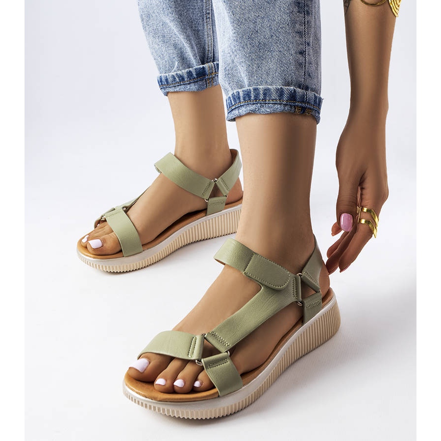 Vihreät Heron-sandaalit ovat kesätyylin kvintessenssi. Niiden urheilullinen leikkaus ja beige pohja sopivat täydellisesti erilaisiin kesäasuihin. Ekologisen nahan käytön ansiosta sekä ulkona että sisällä sandaalit ovat ympäristöystävällisiä ja samalla varmistavat käyttömukavuuden.