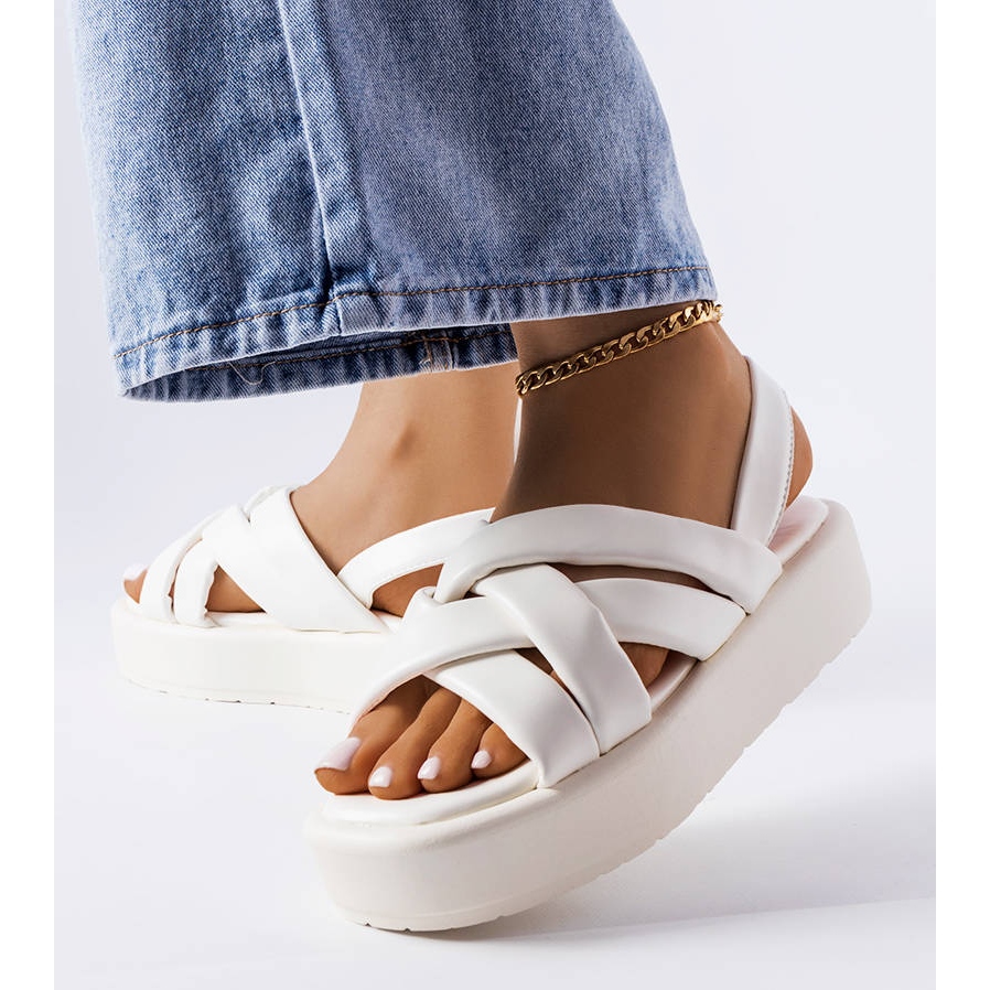 Yksityiskohdat: Hevosenkengän valkoiset sandaalit valkoinen