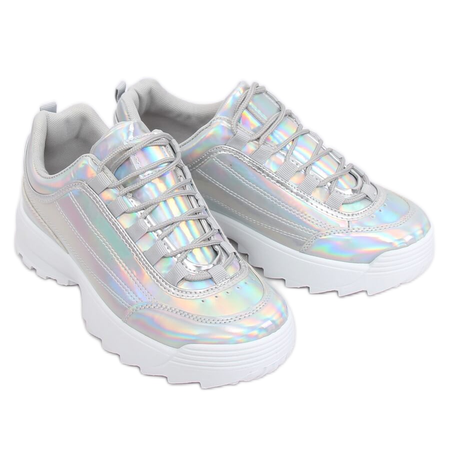 Kestävän synteettisen pohjamateriaalin ansiosta nämä hopeanväriset holografiset kengät ovat loistava valinta pitkille kävelyille, urheiluaktiviteetteille tai rentoille retkille ystävien kanssa. Pitsikiinnitys takaa täydellisen istuvuuden jalkaan.