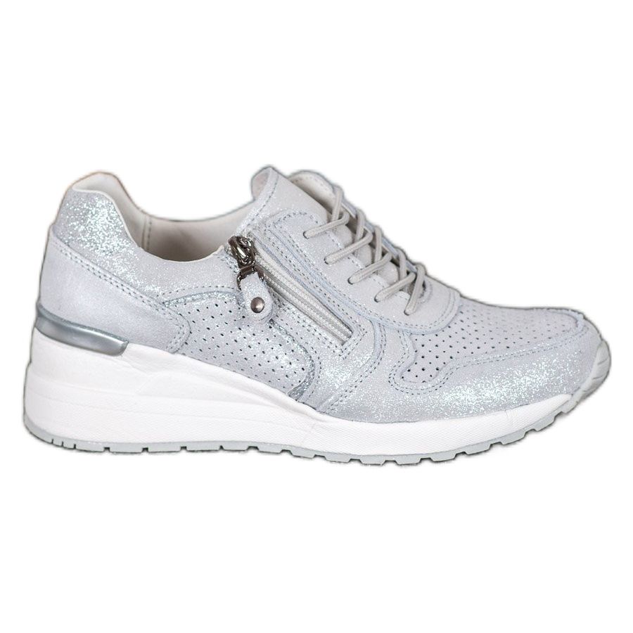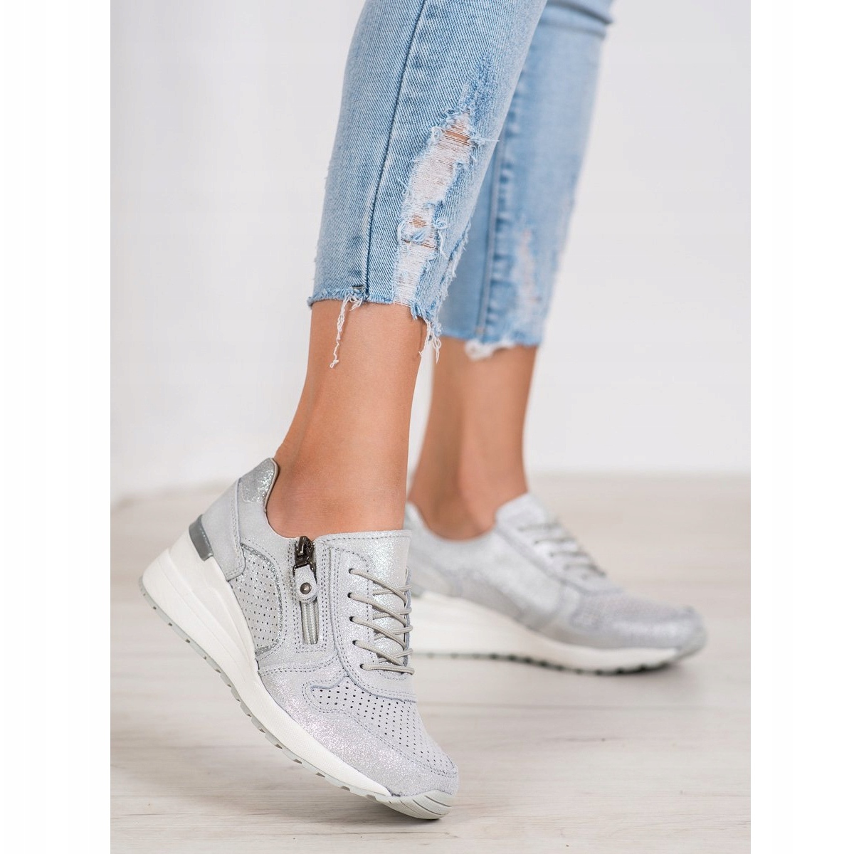 Muodikkaan ja rennon tyylinsä ansiosta Filippo Silver Sneakers With Glitter on loistava lisä jokaiseen kevät- ja syys-talvivaatekaappiin. Nämä ainutlaatuiset kengät herättävät varmasti huomion ja saavat sinut tuntemaan olosi varmaksi ja tyylikkääksi kaikissa tilanteissa. Täydellinen naisille, jotka arvostavat mukavuutta, eleganssia ja omaperäisyyttä!