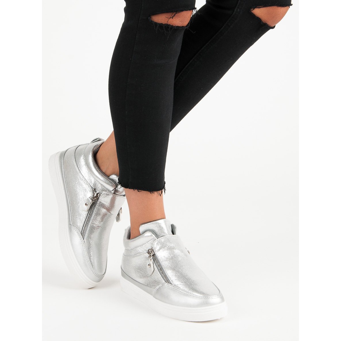 Hopeanväriset vetoketjulliset lenkkarit ovat täydellinen valinta naisille, jotka haluavat erottua joukosta mukavuudesta tinkimättä. Niiden alkuperäinen tyyli sopii täydellisesti muodikkaisiin, rohkeisiin tyyleihin, ja hopean väri houkuttelee huomiota ja lisää luonnetta mihin tahansa asuun.