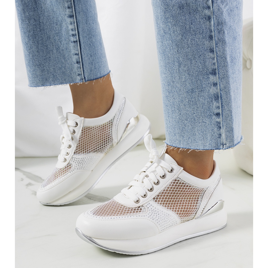 Löydä täydelliset jalkineet kesäpäiviin - valkoiset Ilkay-lenkkarit, joissa moderni muotoilu yhdistyy poikkeukselliseen mukavuuteen. Nämä laadukkaasta ekologisesta nahasta valmistetut urheilukengät erottuvat silmiinpistävästä verkkopanostuksesta ja hienovaraisesta tekojalokivikoristeesta, joka antaa niille ainutlaatuisen luonteen.