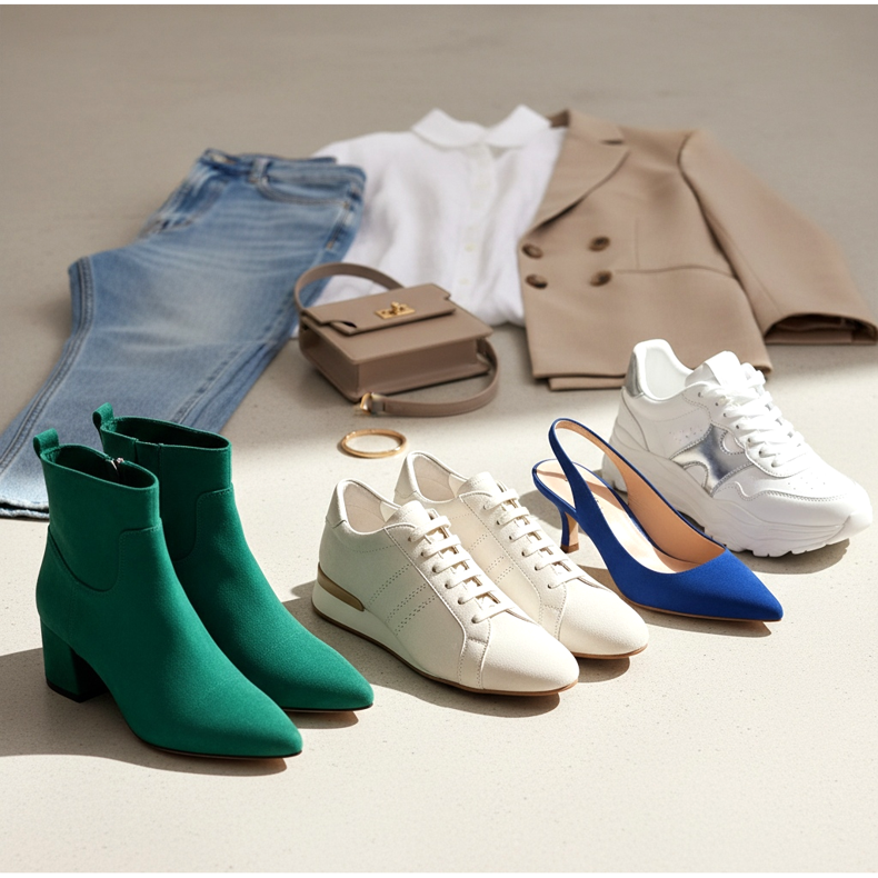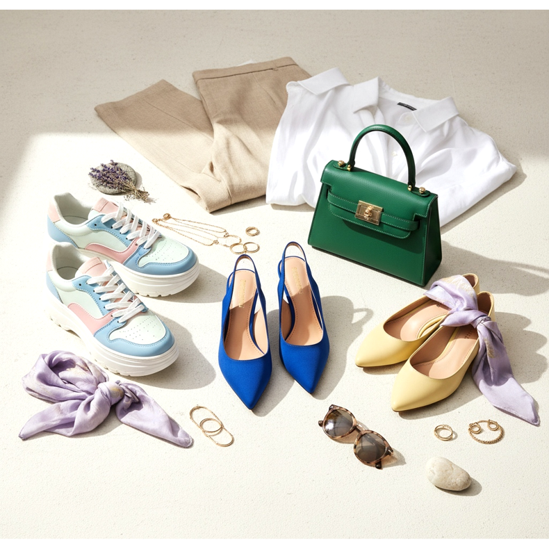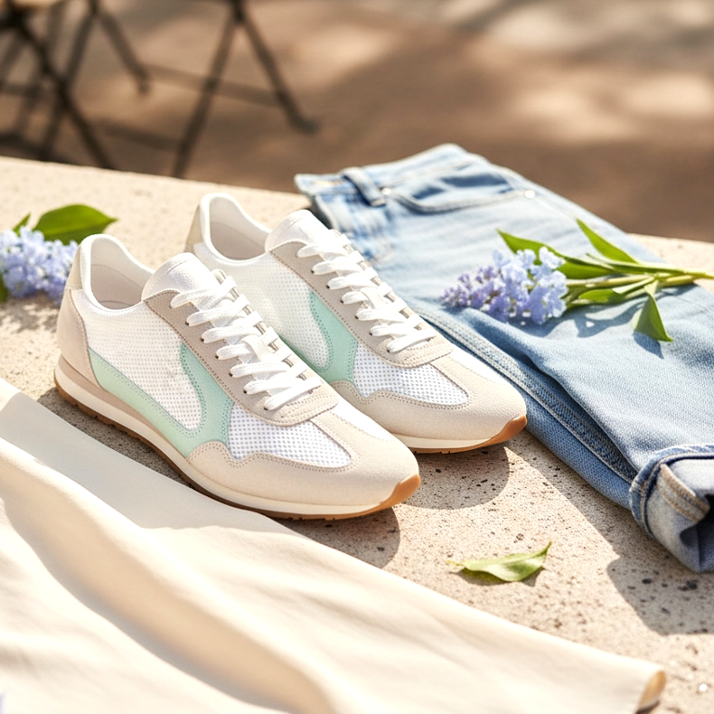 Tämä trendi sopii täydellisesti kauden yleiseen filosofiaan: vähemmän huutoa, enemmän luokkaa. Ohut lenkkarit näyttävät upeilta suoralahkeisten housujen, käärittyjen farkkujen ja tyylikkäiden midi-mekkojen kanssa. Tämä urheilullisen rennon ja naisellisen hienostuneisuuden yhdistelmä on yksi kevään 2026 vahvimmista muotoiluaksenteista. Valitse valkoisen, kerman tai pastellisävyisen mintun tai laventelin mallit hyödyntääksesi tämän trendin henkeä.