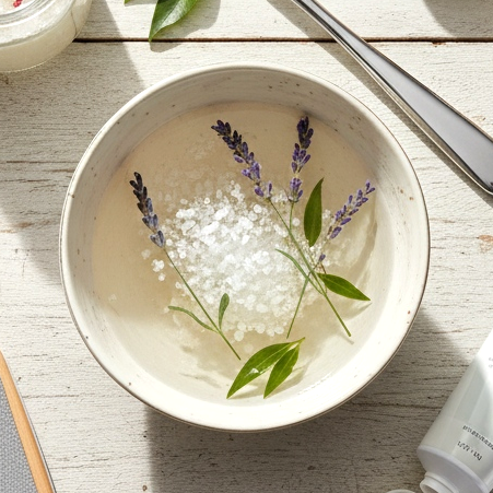 Aloita lämpimällä jalkakylvyllä (10-15 minuuttia). Lisää veteen muutama ruokalusikallinen merisuolaa tai Epsom-suolaa - tämä pehmentää kovettunutta ihoa ja helpottaa sen poistamista. Voit myös lisätä muutaman tippa laventeli- tai teepuuöljyä, joilla on antibakteerisia ja rentouttavia ominaisuuksia.