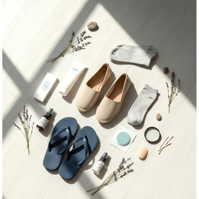 Halkeilevat kantapäät: Tämä on seurausta ihon kuivumisesta ja kehon paineesta. Säännöllinen kosteuttaminen ureavoiteella ja umpikorkoisten kenkien käyttö (varvastossojen sijaan) on paras ehkäisy. Edistyneissä tapauksissa käytä jalkanaamioita, joissa on glykolia tai AHA-happoja, jotka kuorivat intensiivisesti kuollutta ihoa.