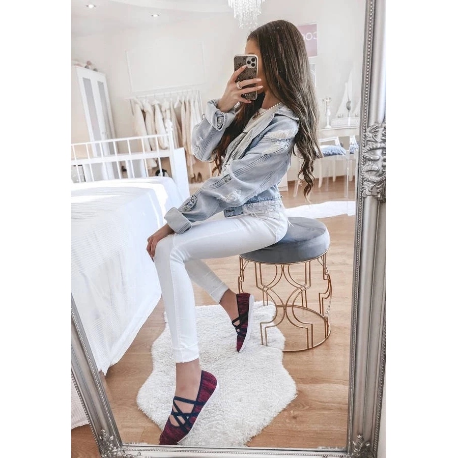 Korkealaatuisesta kankaasta valmistettu balleriinit tarjoavat hengittävyyden ja mukavuuden käyttää jopa lämpiminä päivinä. Koristeelliset kuminauhat, jotka on kiinnitetty pohjaan, tukevat jalkaa tehokkaasti, takaavat vakauden kävellessä.