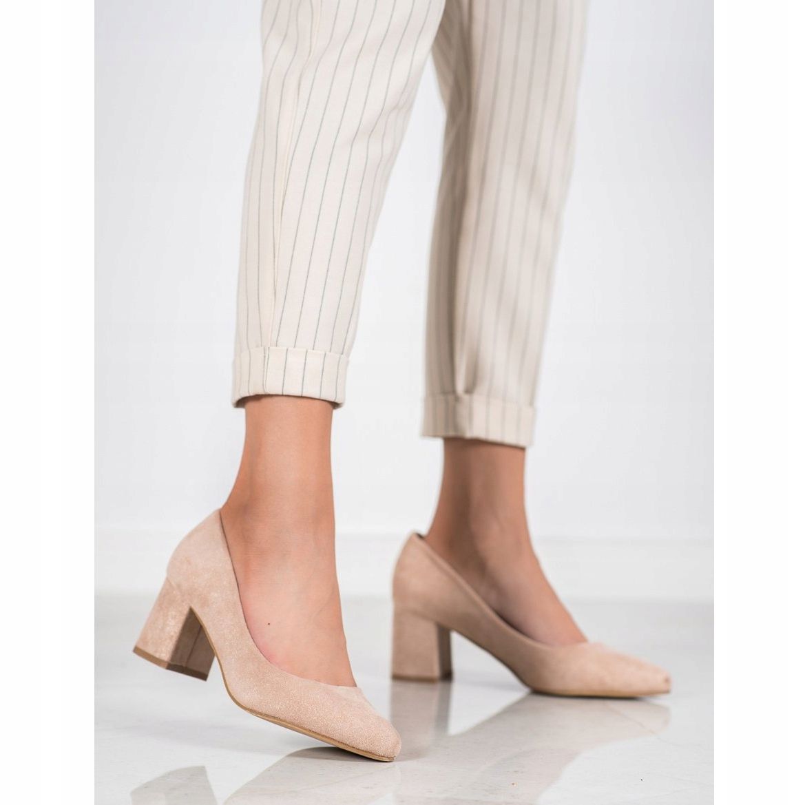 Pumput on varustettu leveällä ja vakaalla 6 cm korkealla lohkokorolla, joka takaa mukavuuden myös koko päivän käytössä. Valmistettu korkealaatuisimmista materiaaleista, ja niissä on ekologiset nahkasisäkkeet, jotka takaavat mukavuuden ja riittävän ilmanvaihdon. Sileä, synteettinen pohja tekee kengistä paitsi tyylikkäitä, myös toimivia.