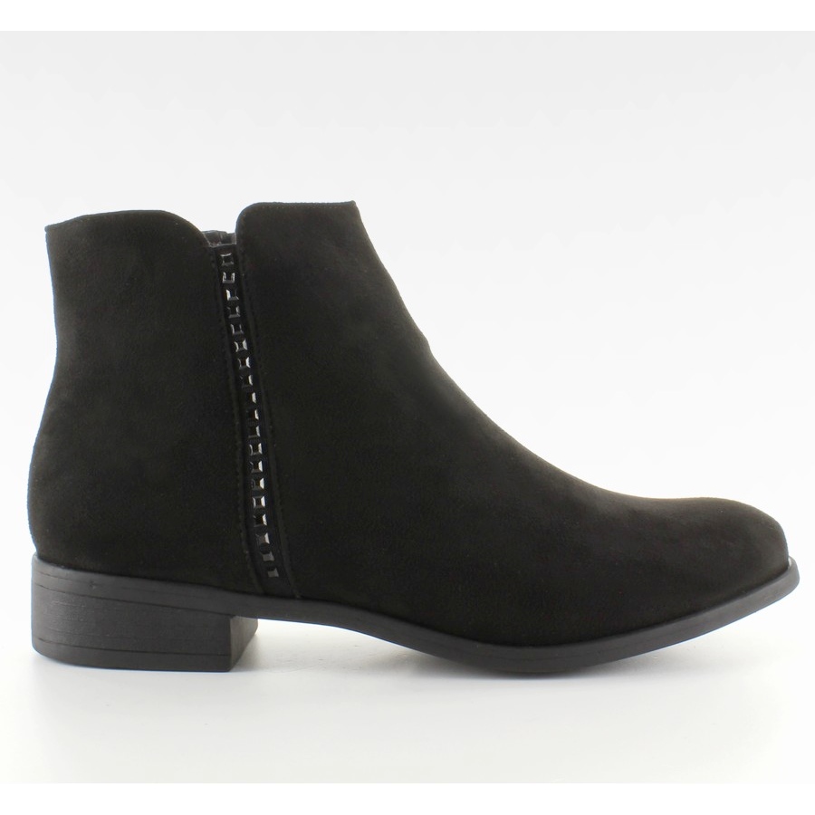 Ekologisesta mokkanahkasta valmistetut tyylikkäät Chelsea-saappaat klassisessa mustassa. Ulkopinta on koristeltu pystysuoraan järjestetyillä kivillä, jotka lisäävät hienovaraista hehkua. Sisäpuolella on vetoketju, joka helpottaa pukemista. Kengät on täysin eristetty pehmeällä turkilla - täydelliset kylmempiin päiviin.