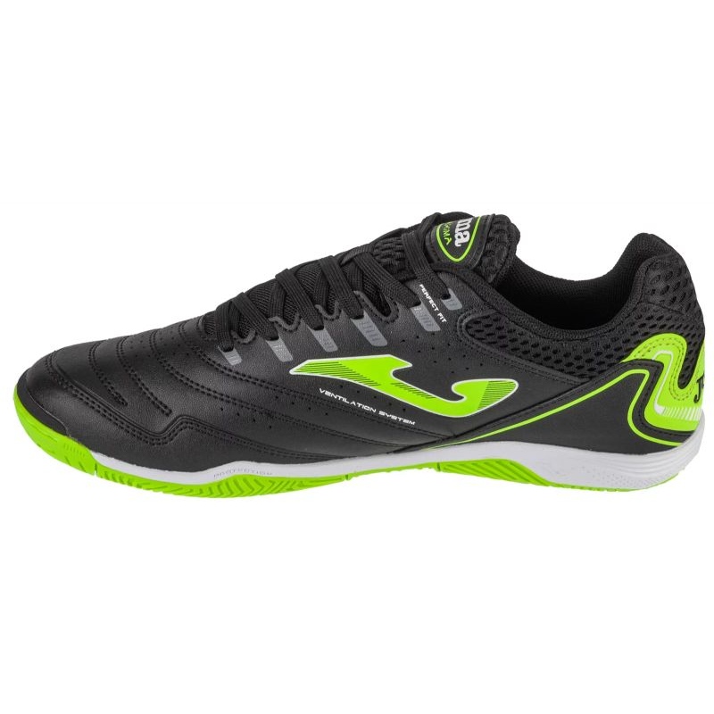 Joma Maxima 2401 MAXS2401in -jalkapallokengissä ovat loistava valinta kaikille sisätilojen jalkapallon rakastajille. Nämä miesten salit, tyylikkäässä mustassa värissä vihreillä aksentteilla, yhdistävät modernin suunnittelun toiminnallisuuteen, mikä tekee niistä täydellisen ystävällisiin otteluihin ja koulutuksiin.