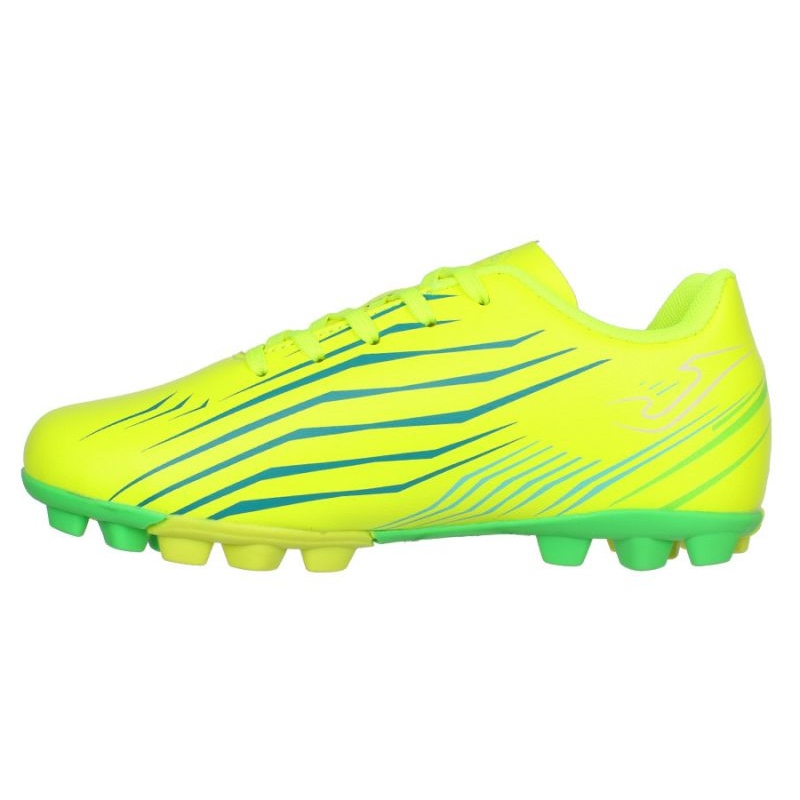 JOMA Propulsion 2505 HG PRJS2509HG -jalkapallokengät voimakkaassa keltaisessa värissä ovat loistava valinta nuorille urheilijoille, jotka haluavat yhdistää mukavuuden ja korkean suorituskyvyn kentällä. Synteettisten yläkäyttöön tarkoitetun kevyen liikenneruuhkien ansiosta pallon hallinnassa on poikkeuksellista tarkkuutta, mikä on ratkaisevan tärkeää intensiivisten otteluiden aikana.