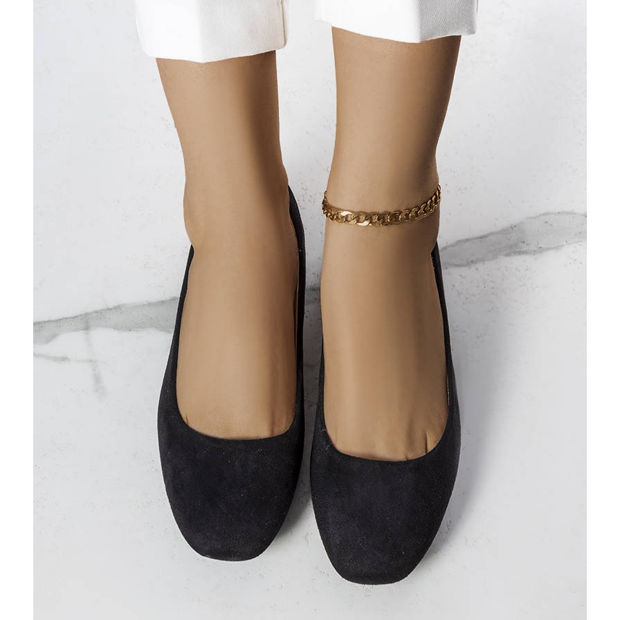 Yksityiskohdat: Julesin mustat mokkanahkabalerinat
