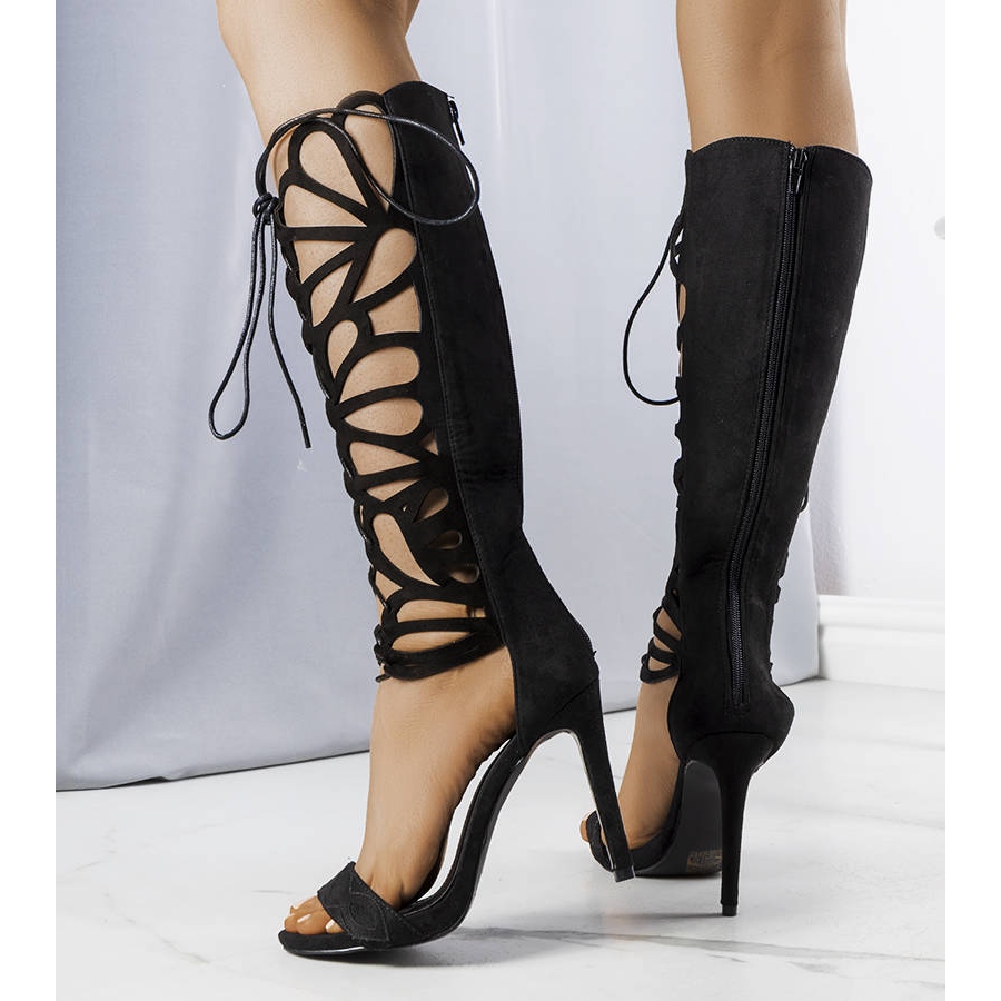 Sandaalit on kiinnitetty käytännöllisellä vetoketjulla takaa ja niissä on solmimisnauhat koko pituudelta, mikä mahdollistaa täydellisen istuvuuden jokaiseen jalkaan. Korkeat 11 cm korkokengät korostavat figuuria ja lisäävät itsevarmuutta.