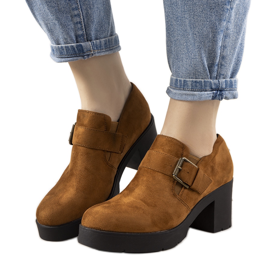 Vakaa 7 senttimetrin pylväs ei vain lisää viehätysvoimaa, vaan myös korostaa kauniisti jalkoja tehden siluetista ohuen ja naisellisen. Ruskean sävyisen mokkanahkainen päällinen ei ole vain esteettinen, vaan myös käytännöllinen - joustavat sisäosat varmistavat helpon pukemisen ja täydellisen istuvuuden jalkaan.