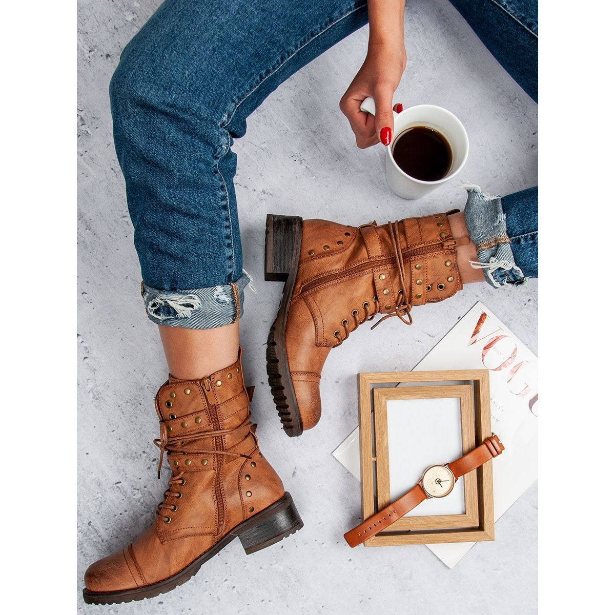 SDS Camel ruskeat työntekijät ovat ehdotus modernille naiselle, joka arvostaa ainutlaatuista ulkonäköä ja toimivuutta. Riippumatta siitä, oletko menossa kävelylle ympäri kaupunkia tai tapaamaan ystäviä, nämä nilkkurit täydentävät täydellisesti mitä tahansa rentoa asua.
