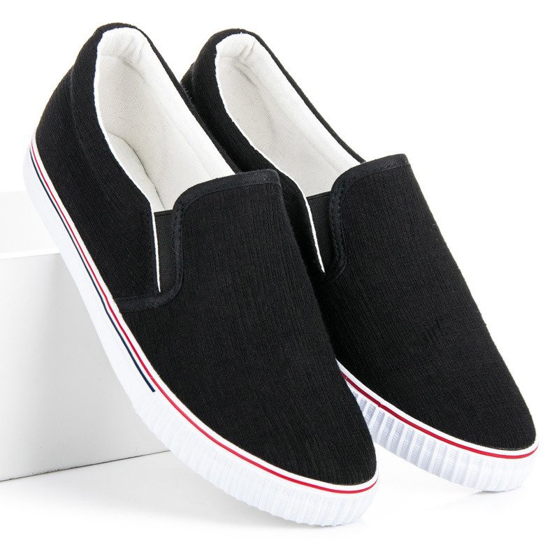 Saatavana useissa eri koossa, nämä mustat slip-onit ovat loistava perusta urheilulliseen tyyliin, jota voidaan käyttää joka päivä. Ilman kuvioita, pyöreällä varpaalla ne näyttävät minimalistilta, minkä ansiosta ne on helppo yhdistää muihin vaatteisiin. Älä odota - tarkista saatavuus ja osta jo tänään lisätäksesi tyyliä ja mukavuutta jalkinekokoelmaasi!