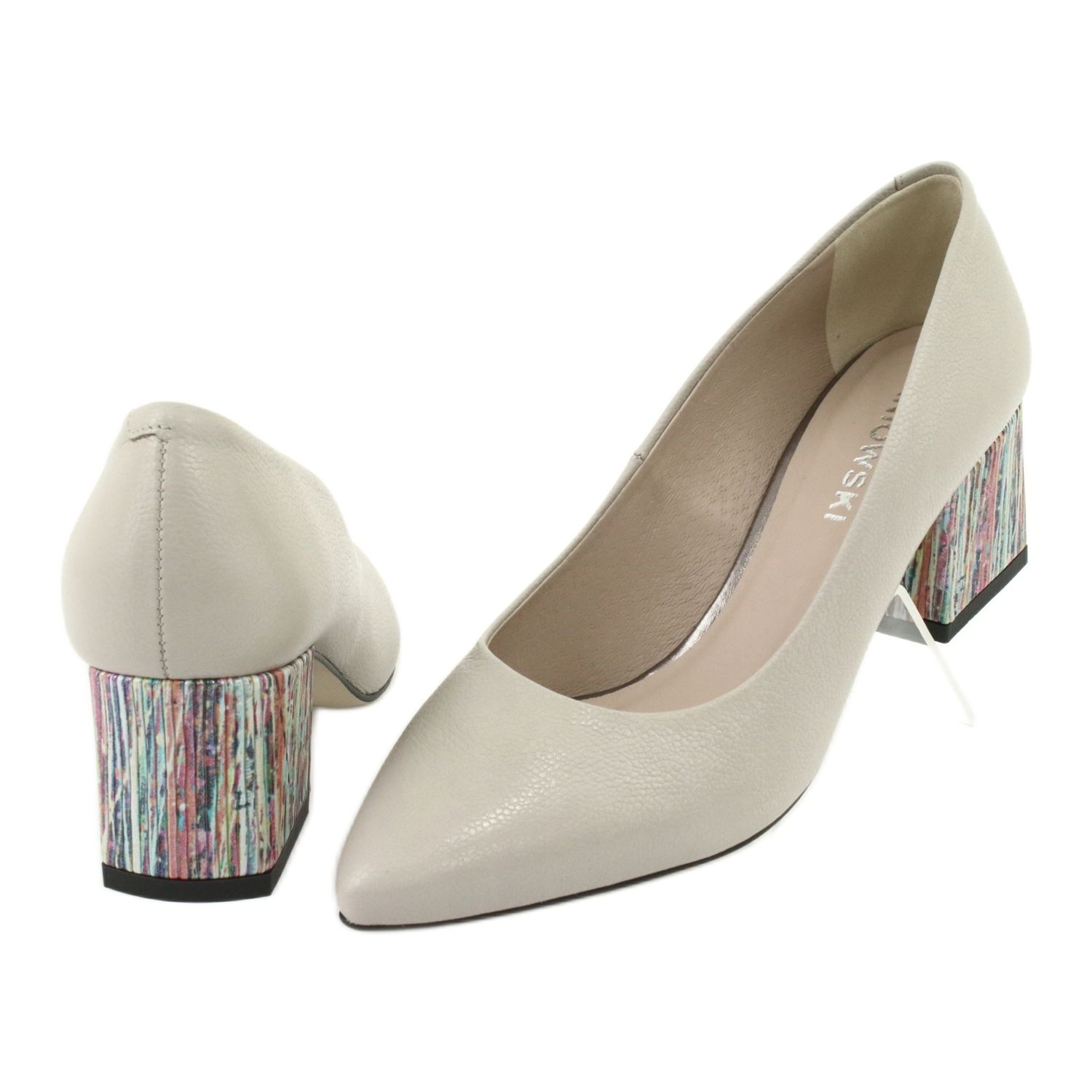 Tyylikkät naisten pumput Kaniowski -malli 0205 varjossa "Mushroom" (beige), yhdistä muodikas muotoilu mukavuuteen. Valmistettu kokonaan luonnollisesta viljahasta, jolla on nahkainen insertti ja vuoraus, takaa mukavuuden jopa pidemmän käytön aikana. Klassinen mantelivarpa ja koristeellinen lohkotyyppi, jonka korkeus on 5,2 cm, lisäävät tyyliä, ja asetettu rakenne helpottaa sen laittamista. Neutraali, lämmin sävy tekee kengät sopivasti sekä toimisto- että iltatyyliä.