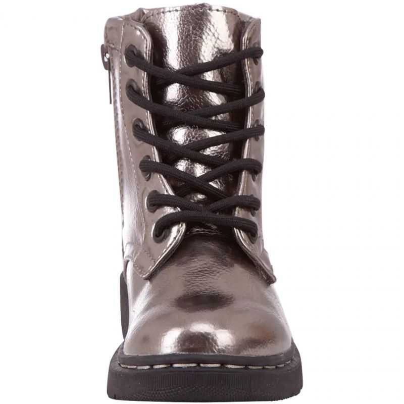 Korkea, synteettinen päällinen lakatulla pinnoitteella suojaa täydellisesti jalkoja epäsuotuisilta sääolosuhteilta ja varmistaa samalla vakauden. Korkea kaulus ja pehmeästä materiaalista valmistettu vuori lisäävät käyttömukavuutta, joten pitkäkin käyttötunti ei aiheuta ongelmia. Muotoilua täydentää vaahtomuovipohjallinen, joka mukautuu täydellisesti jalkaan varmistaen sen oikean tuen.