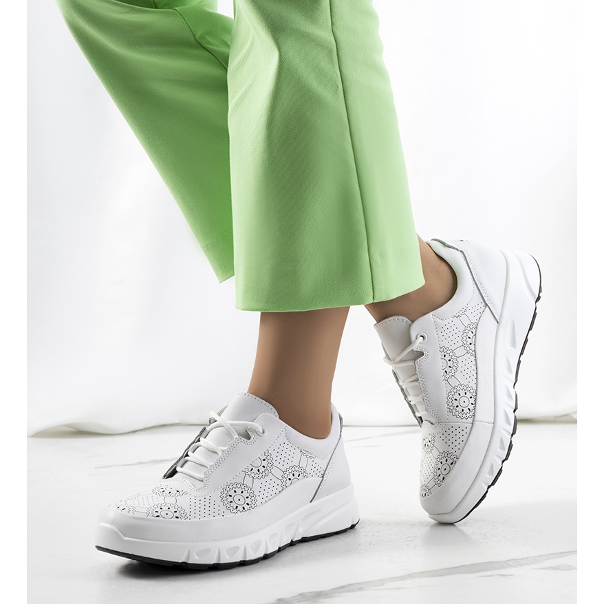 Kaypa valkoiset nahkalenkkarit ovat täydellinen valinta naisille, jotka haluavat yhdistää muodin ja mukavuuden jokapäiväisessä tyylissä. Hienovaraisen harjakattoisen kuvion ansiosta nämä kengät huokuvat naisellisuutta ja keveyttä, mikä tekee niistä täydellisen lisän kesäasuihin.