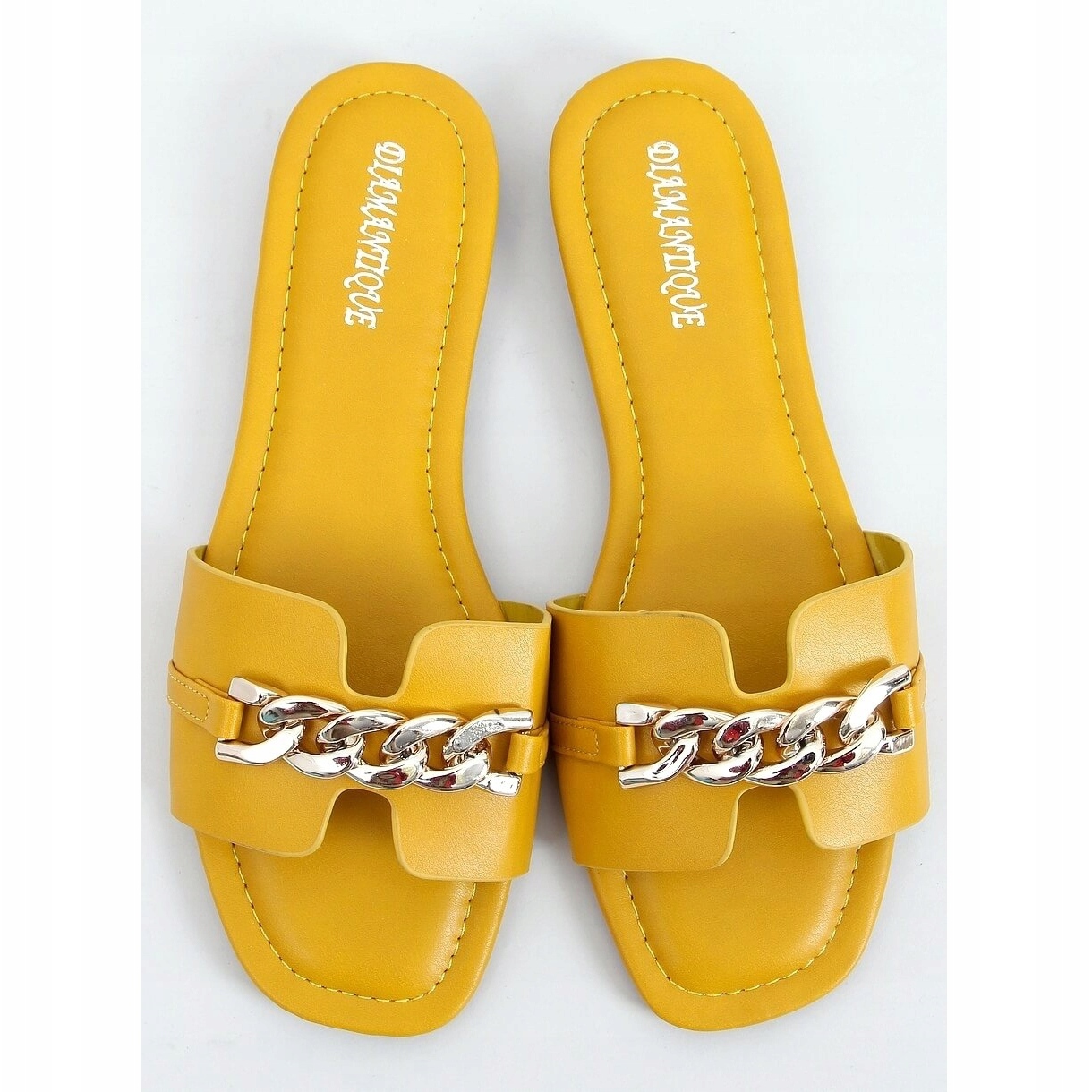 Esittelemme varvastossut ketjulla muodikkaassa keltaisessa värissä - malli HY23-01 Yellow, joka sopii täydellisesti uusimpiin trendeihin. Nämä täysjyväiset naisten liukumäet ovat täydellinen valinta kesäpäiviin yhdistäen mukavuuden moderniin tyyliin.