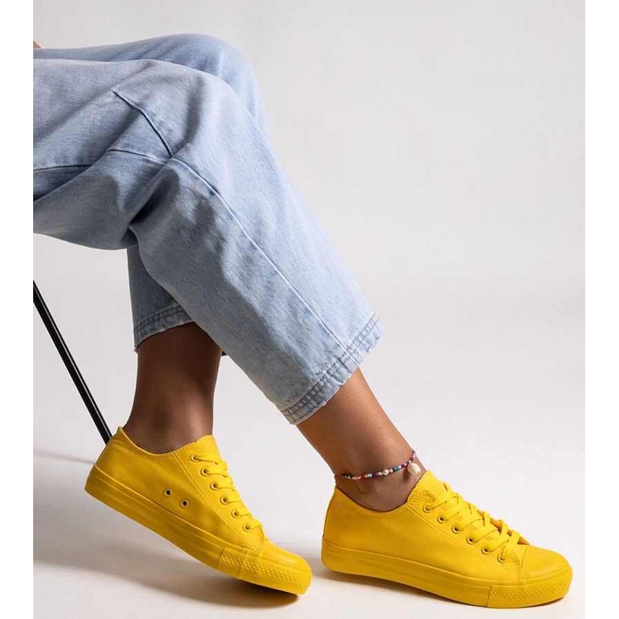 Yksityiskohdat: Keltaiset klassiset Nudar-lenkkarit keltainen