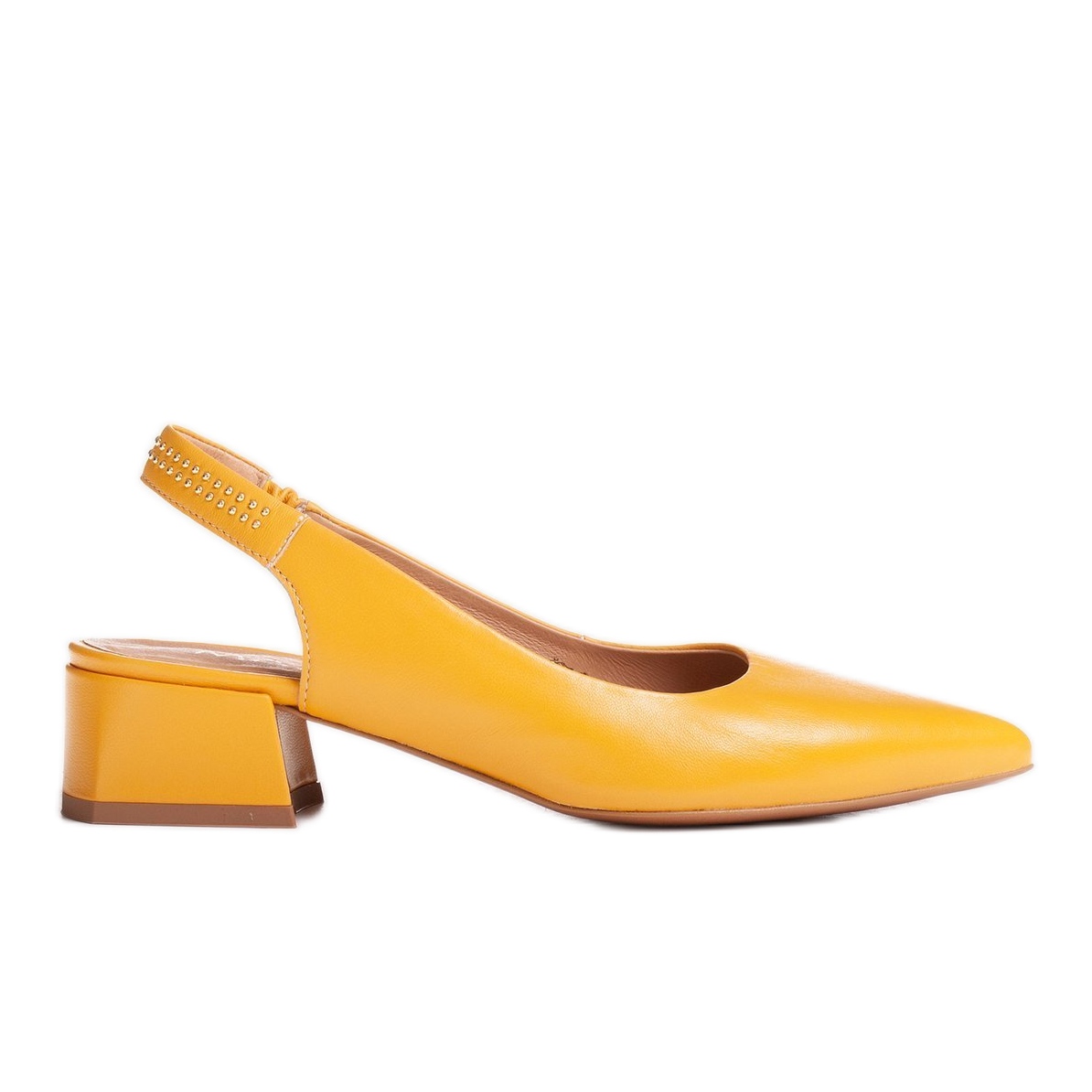 Yksityiskohdat: Marco Shoes Keltaiset nahkasandaalit koristeellisilla suuttimilla keltainen