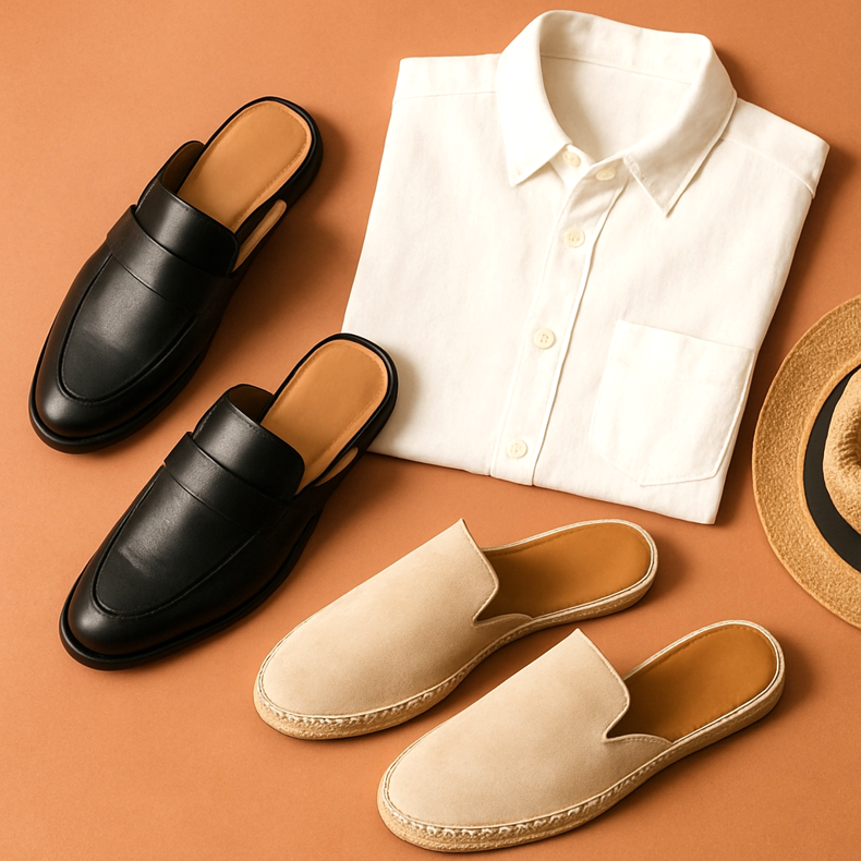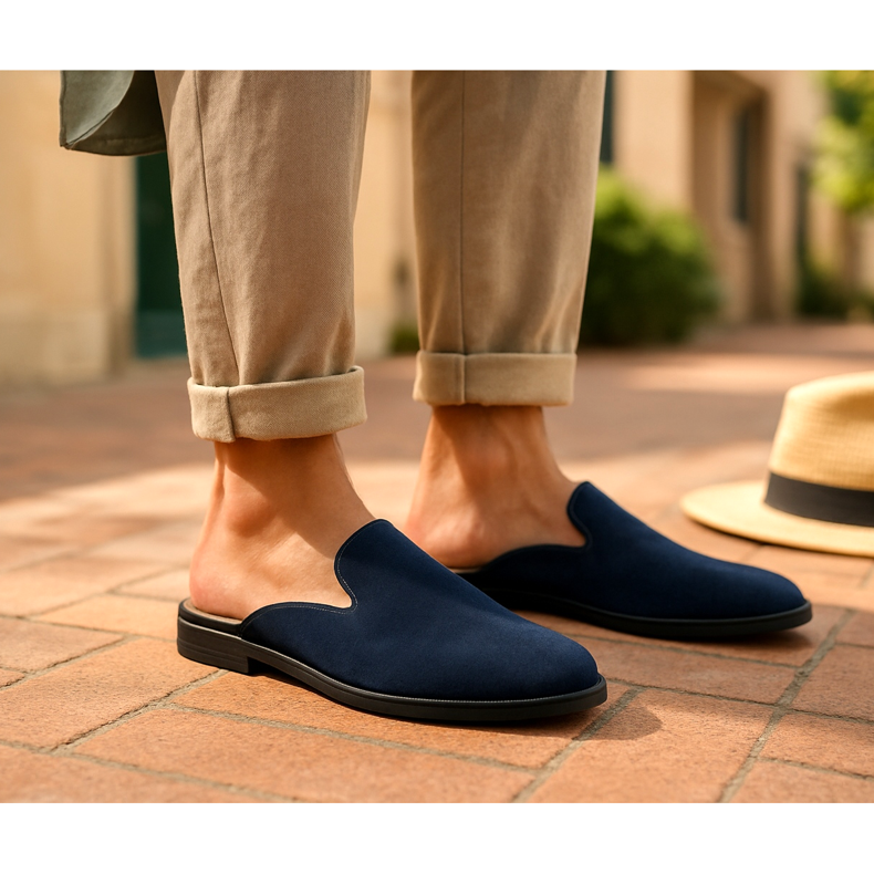 Nahkaiset miesten muulit avoimella kantapäällä ovat ehdotus niille, jotka arvostavat eleganssia ja ripausta vapautta. Useimmiten ne viittaavat loaferien tai munkkien tyyliin, mutta ilman kantapäätä. Ne on valmistettu sileästä tai kohokuvioidusta nahasta, ja niissä voi olla solki, koristeompeleet tai minimalistinen muoto. Ne sopivat täydellisesti kesäpukujen, pellavatakkien, chinojen ja paitojen kanssa. Tämä on valinta rohkeille miehille, jotka arvostavat italialaista helppoutta ja modernia tulkintaa klassikoista.