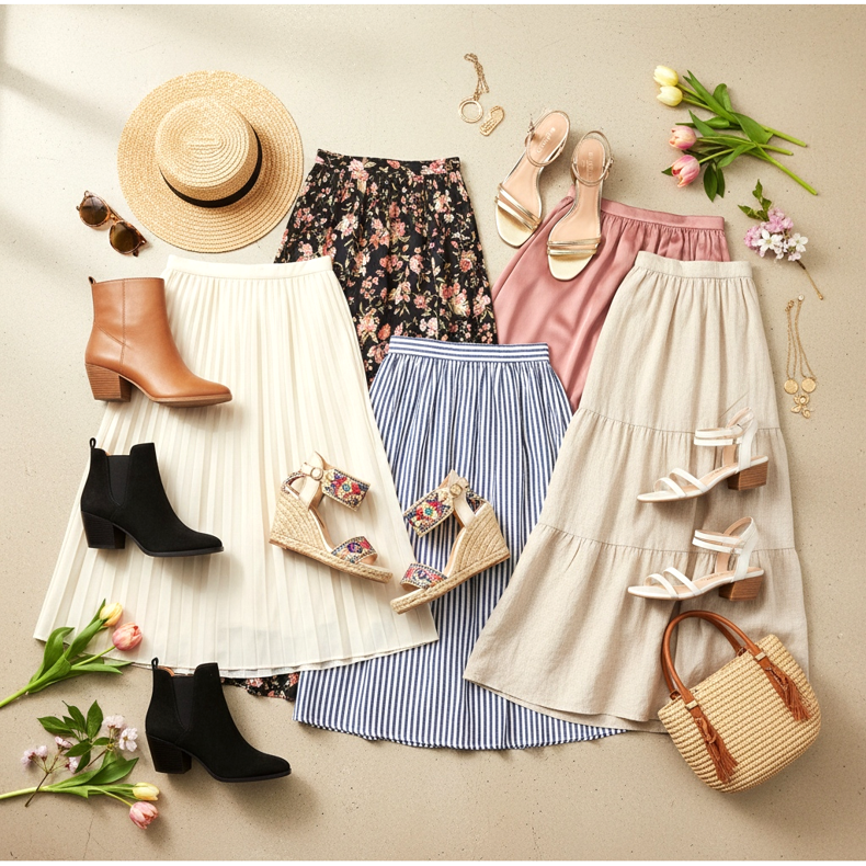 Kengät midi-hameeseen - kuinka valita ne keväällä 2026