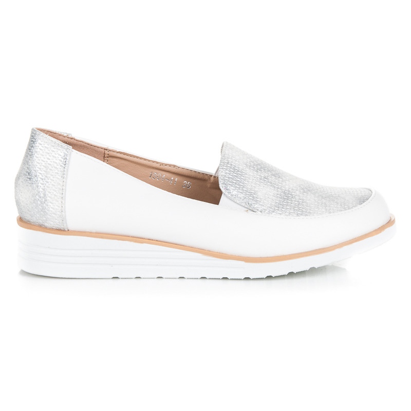 Pyöreä kärki ja erittäin viehättävä kuviointi tekevät näistä kengistä ainutlaatuisen elementin jokaisessa vaatekaappissa. Täydellinen väriyhdistelmä - hillitty harmaa tyylikkään valkoisen kanssa - tekee niistä universaalin lisävarusteen, jonka voit helposti yhdistää eri tyyleihin.
