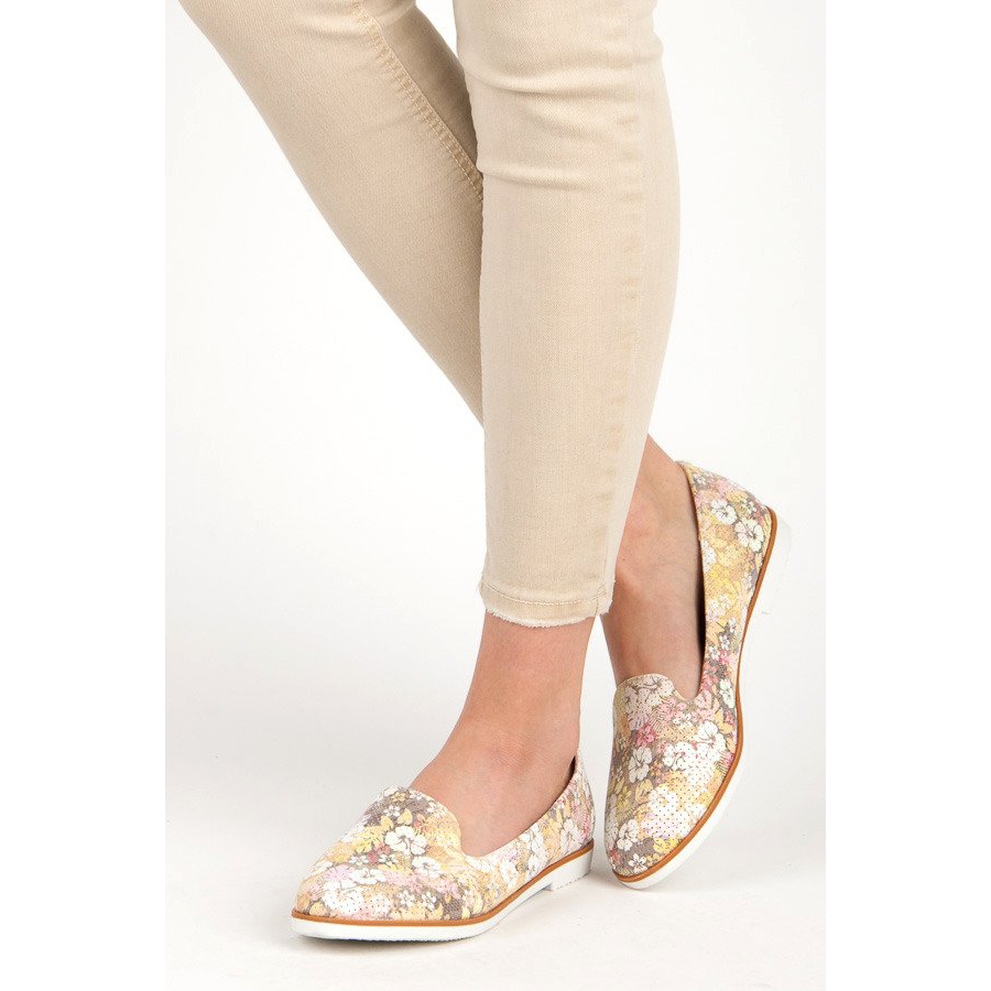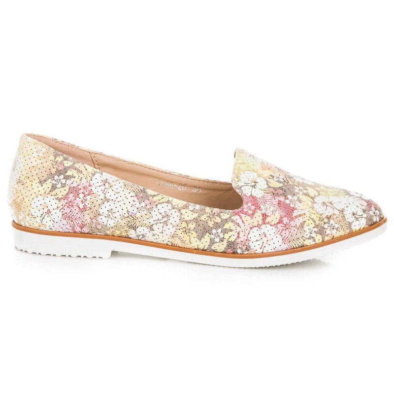 Spring Yellow Lords on täydellinen valinta kevään ja kesän päiviin yhdistäen mukavuuden muodikkaan muotoilun kanssa. Valmistettu korkealaatuisesta rei'itetystä ekologisesta nahasta, ne tarjoavat paitsi erinomaisen ilmanvaihdon myös alkuperäisen tyylin. Niiden valkoinen, litteä, päällystetty pohja on täydellisessä kontrastissa silmäänpistävän kukka-aiheen kanssa lämpimissä kullan ja keltaisen sävyissä, rikastettuna herkän vaaleanpunaisella, mikä tekee niistä erittäin naisellisia ja raikkaita.