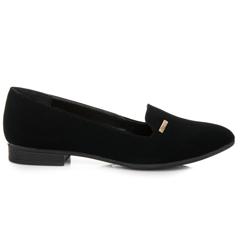 Mustat lordit ovat tyylikäs valinta mukavuutta ja muodikasta ilmettä arvostaville naisille. Litteän, 3,0 cm korkean pohjan ansiosta nämä kengät sopivat täydellisesti sekä arkeen että iltaretkelle. Niiden universaali musta väri ja klassinen, pyöreä kärki tekevät niistä yhteensopivia moniin eri tyyleihin - sekä housuihin että mekoihin.