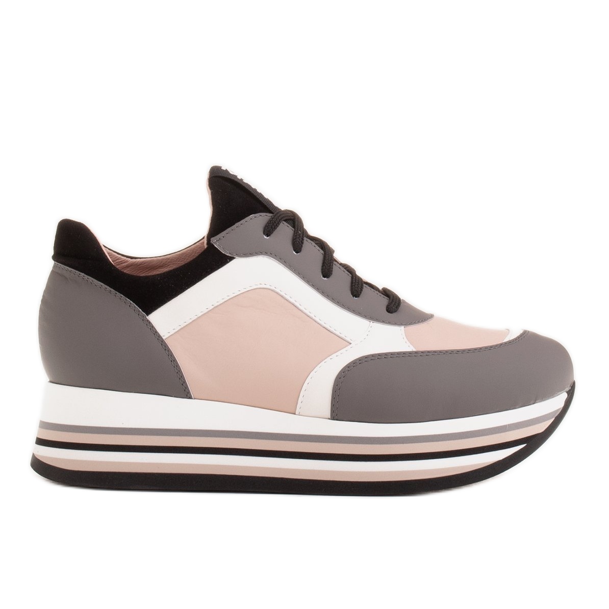 Marco Shoes Marco Shoes Kevyet lenkkarit paksulla pohjalla, joka on valmistettu luonnollisesta nahasta harmaa