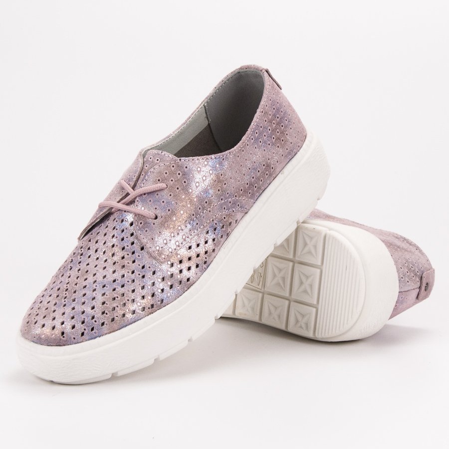 Saatavana kauniina vaaleanpunaisena, monivärisenä yhdistelmänä, nämä mallit sopivat täydellisesti rentoon, muodikkaan tyyliin ja sopivat täydellisesti kevään ja kesän asuihin. Harjakattoisen kuvion ja kantapään puutteen ansiosta ne ovat ihanteellinen ratkaisu jokapäiväiseen käyttöön - töihin, kävelyyn tai tapaamisiin ystävien kanssa.