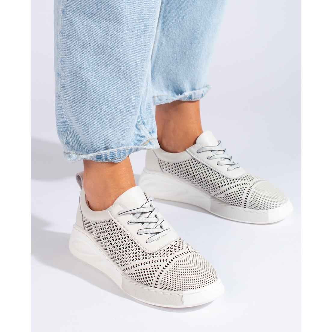 Tämä malli sopii rentoon tyyliin, mikä tekee siitä ihanteellisen valinnan kaikkina vuodenaikoina - keväästä talveen. Harjakattoisen kuvion ansiosta kengät antavat kevyen ja raikkaan ilmeen ja mahdollistavat samalla vapaan ilmankierron, mikä on hyödyllistä lämpiminä päivinä. Nämä lenkkarit on myös varustettu nahkasisäkkeellä, joka lisää käyttömukavuutta.