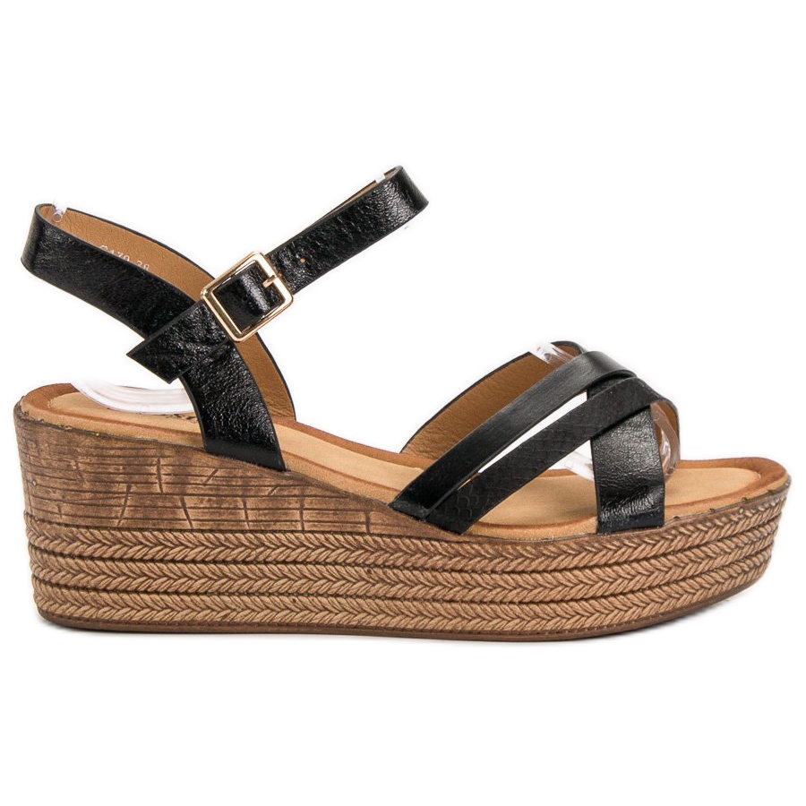 Nämä ovat tunnetun Seastar-brändin kevyet kiila sandaalit, jotka varmasti ilahduttavat jokaista tyylikkäiden ja mukavien jalkineiden ystävää. Korkealaatuisesta ekologisesta nahasta valmistetut mustat sandaalit ovat täydellinen valinta kesäpäiviin ja alkusyksyyn.