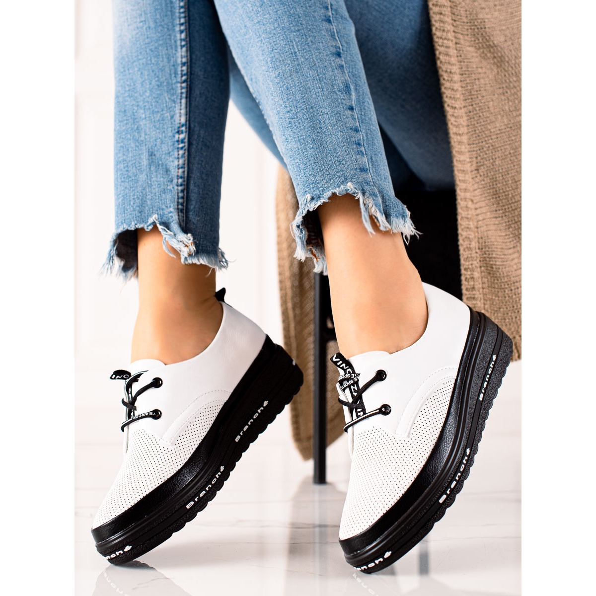 Valitse kevyet Vinceza-kengät, jotka ovat täydellinen lisä vaatekaappiisi keväällä, kesällä, syksyllä ja talvella. Universaalin valkoisen värin ansiosta voit yhdistää ne helposti sekä arki- että tyylikkäämpiin asuihin. Hemmottele itseäsi ylellisyydellä ja mukavuudella valitsemalla malli, joka varmasti herättää huomion!