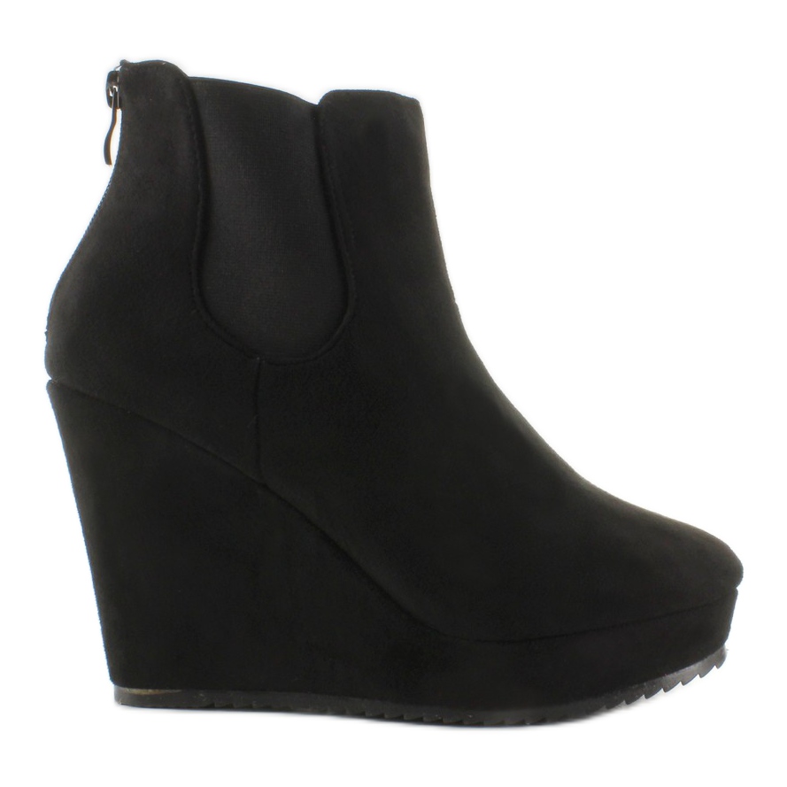 Löydä eleganssia ja mukavuutta 824 Black Chelsea -saappaat. Nämä tyylikkäät mustat naisten nilkkurit ovat täydellinen yhdistelmä muodikasta muotoilua ja käyttömukavuutta. Vakaa 11 cm korkea kiila lisää vartaloon hienovaraista hoikentavaa vaikutusta ja pieni alusta tekee niissä kävelemisestä miellyttävää ja vakaata.