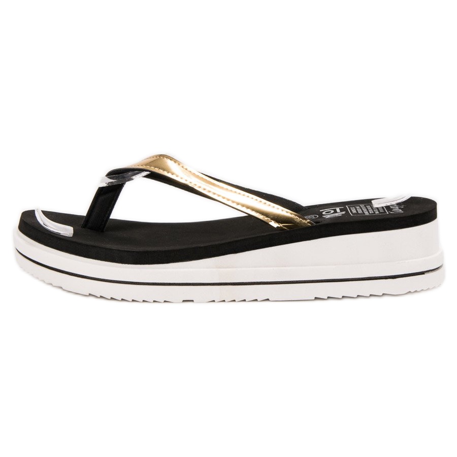 Löydä täydelliset kesäkengät - mustat kiilavarvastossut SHELOVETilta! Nämä tyylikkäät naisten varvastossut yhdistävät mukavuuden ja tyylin, mikä tekee niistä täydellisen valinnan sekä rannalle että jokaiseen päivään. 4,5 cm:n korkeudella kiila tarjoaa riittävän vakauden ja mukavuuden kävellessä, ja jalkaa tukeva kultainen hihna lisää vaivatonta charmia.