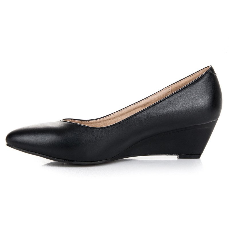 5,5 cm korkea kiila ei vain lisää muutaman senttimetrin korkeutta, vaan takaa myös vakauden ja mukavuuden pitkiä aikoja. Laadukkaasta ekologisesta nahasta valmistetut pumput eivät ole vain esteettisiä, vaan myös helppoja puhdistaa ja huoltaa. Pyöreä kärki antaa niille hienovaraisen luonteen, ja slip-on-kiinnitys tekee kenkien pukemisesta ja riisumisesta puhtaan nautinnon.