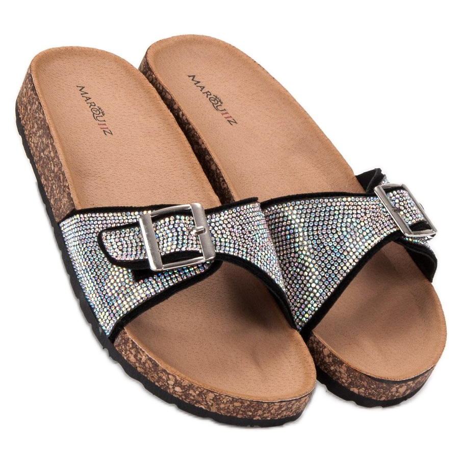 Tutustu Marquizin naisten tossujen poikkeukselliseen viehätysvoimaan - kiiltävät varvastossut ja solki klassisessa mustassa värissä. Nämä ainutlaatuiset jokapäiväiset kengät ilahduttavat paitsi tyylikkäällä ulkonäöllään, myös mukavuudellaan, jonka ne tarjoavat käytettäessä. Niiden poikkeuksellinen kiilto ilahduttaa kauniisti upotettujen zirkonien ansiosta, jotka hohtavat auringonsäteissä ja lisäävät ripauksen ylellisyyttä ja ainutlaatuisuutta jokaiseen tyyliin.