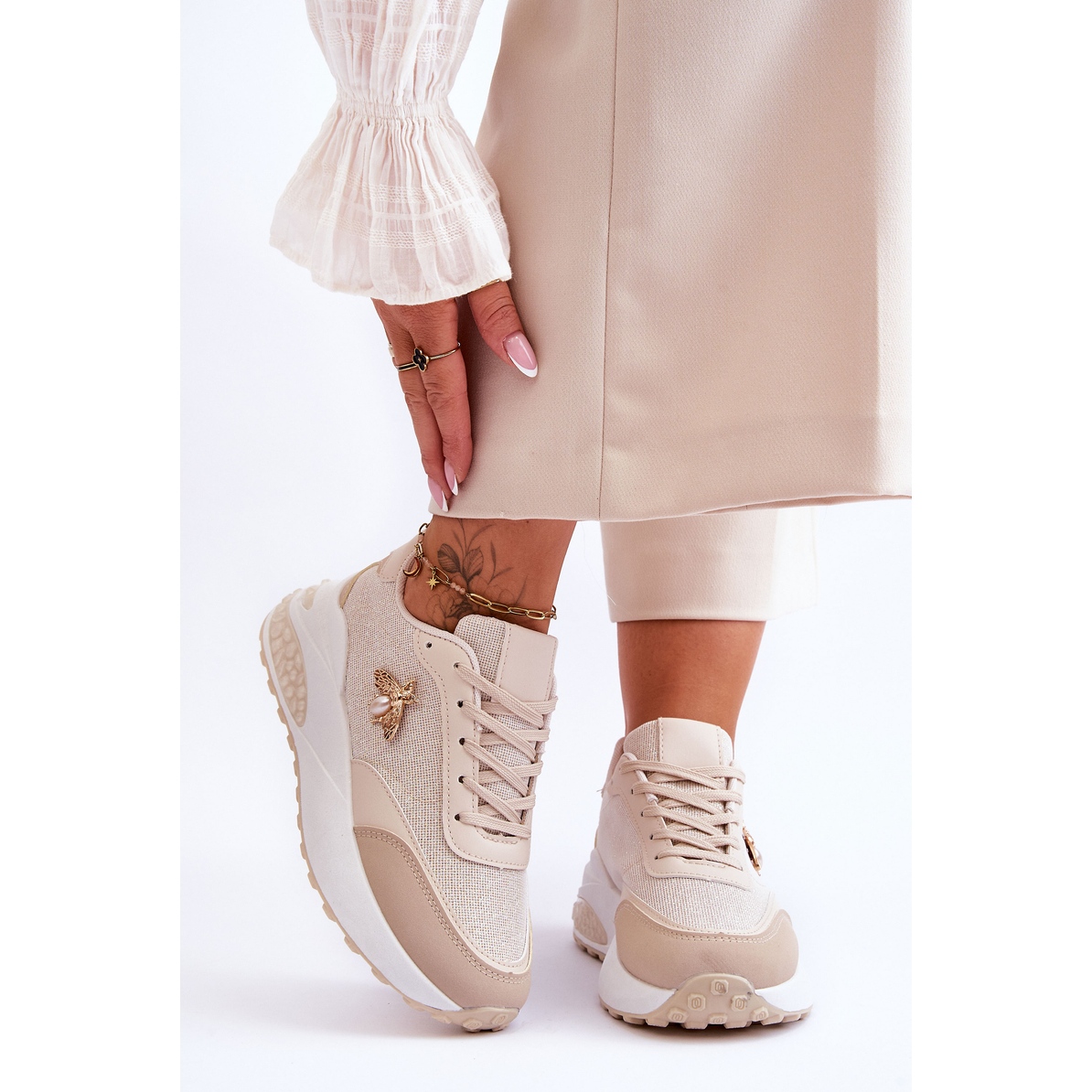 PS1 PS1 Kiiltävät urheilukengät beigellä Seneca-koristeella