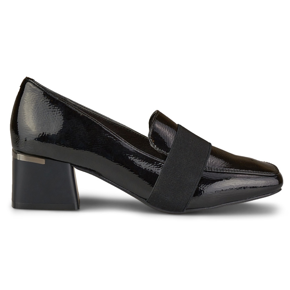 La.fi lakattu matalalla pumput - klassikko, jolla on moderni viimeistely. Ekologisen nahan yläosan musta, lakattu materiaali antaa kengille tyylikkään, kiiltävän ilmeen, joka toimii hyvin sekä työssä että illalla. Neliön nenä ja vakaa viesti, jonka korkeus on 5 cm, tarjoavat mukavuutta koko päivän ajan säilyttäen samalla tyylikkään leikkauksen.