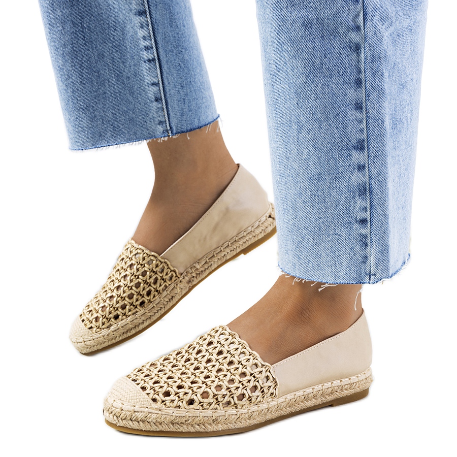 Löydä kesän viehätys beigeillä kudottuilla Kiomi-espadrilleilla! Nämä tyylikkäät ja mukavat kengät ovat täydellinen valinta naisille, jotka haluavat lisätä tyyliinsä keveyttä ja vapautta. Päällisen punottu kuvio viittaa hienovaraisesti muodikkaisiin boho-aksenteihin, mikä tekee espadrilleista täydelliset sekä ranta- että kaupunkikävelyyn.