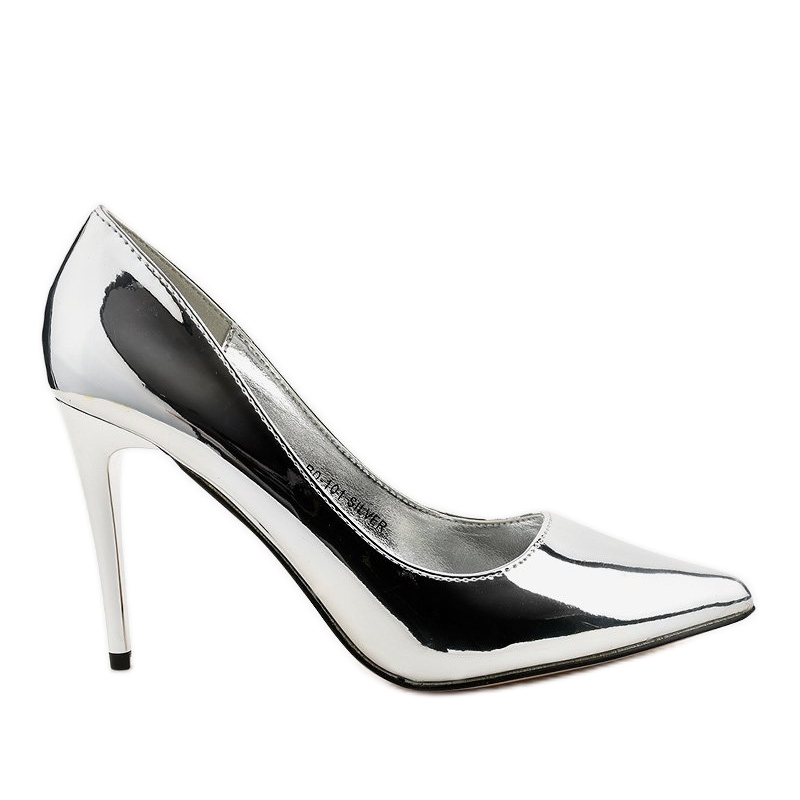 Nämä ovat tyylikkäitä hopeanvärisiä BO-100 lakattuja korkokenkiä, jotka täydentävät täydellisesti minkä tahansa tyylin. Nämä korkealaatuisesta nahkamaisesta materiaalista valmistetut pumput vaikuttavat paitsi kauniilla muodollaan, myös alkuperäisellä, metallisella värillään. 10 senttimetrin kantapään ansiosta saat paitsi ohuen ulkonäön, myös mukavuuden päälläsi.