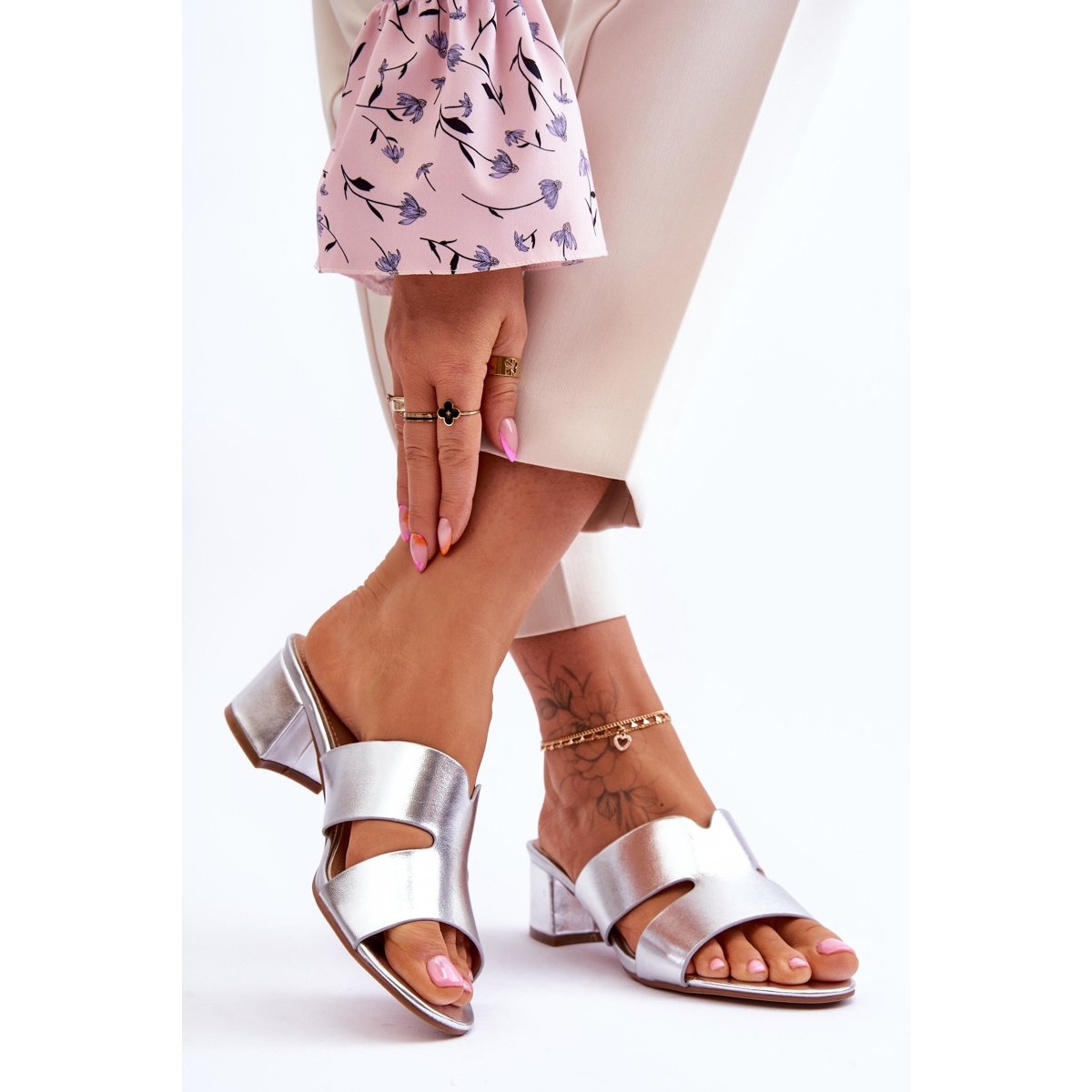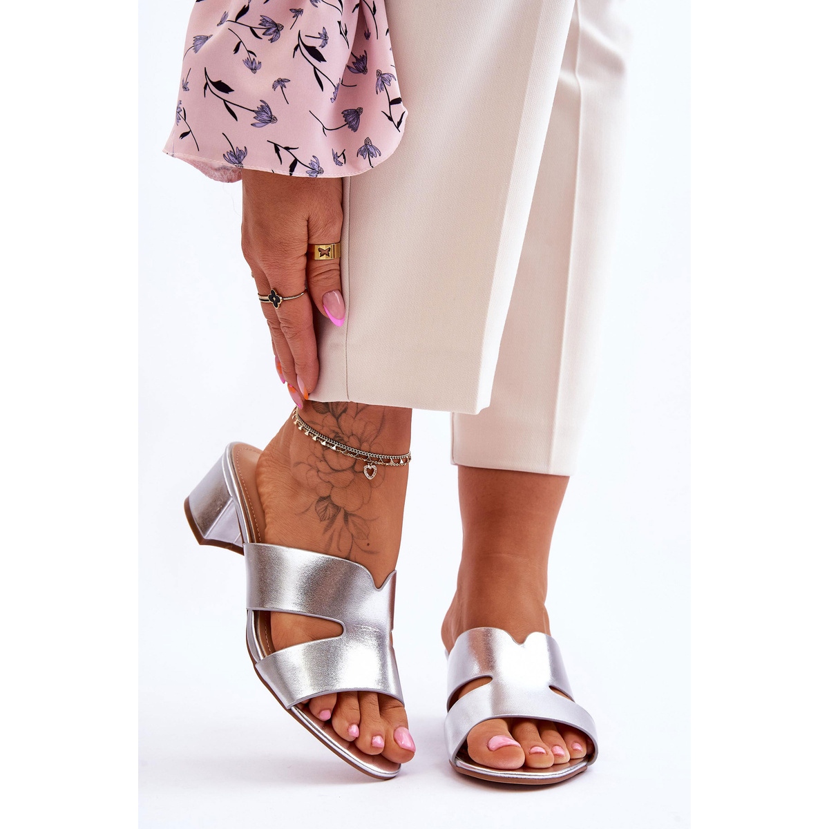 Klassinen matalapikaiset läpän flopset metallisessa hopeapinnoitteessa - tyylikäs ja universaali malli, joka on luotu kevään/kesäkaudelle. Valmistettu kokonaan ekologisesta nahasta, upotettuna vakaan, matalan pylvään (4,5 cm). Pehmeä ekologinen nahkainen insertti tarjoaa mukavuutta jopa pitkän käytön aikana, ja avoin, pyöristetty nenä lisää keveyttä ja naisellista. Sivuleikkaus optisesti ohuet jalat, ja asetettu rakenne helpottaa sen laittamista.