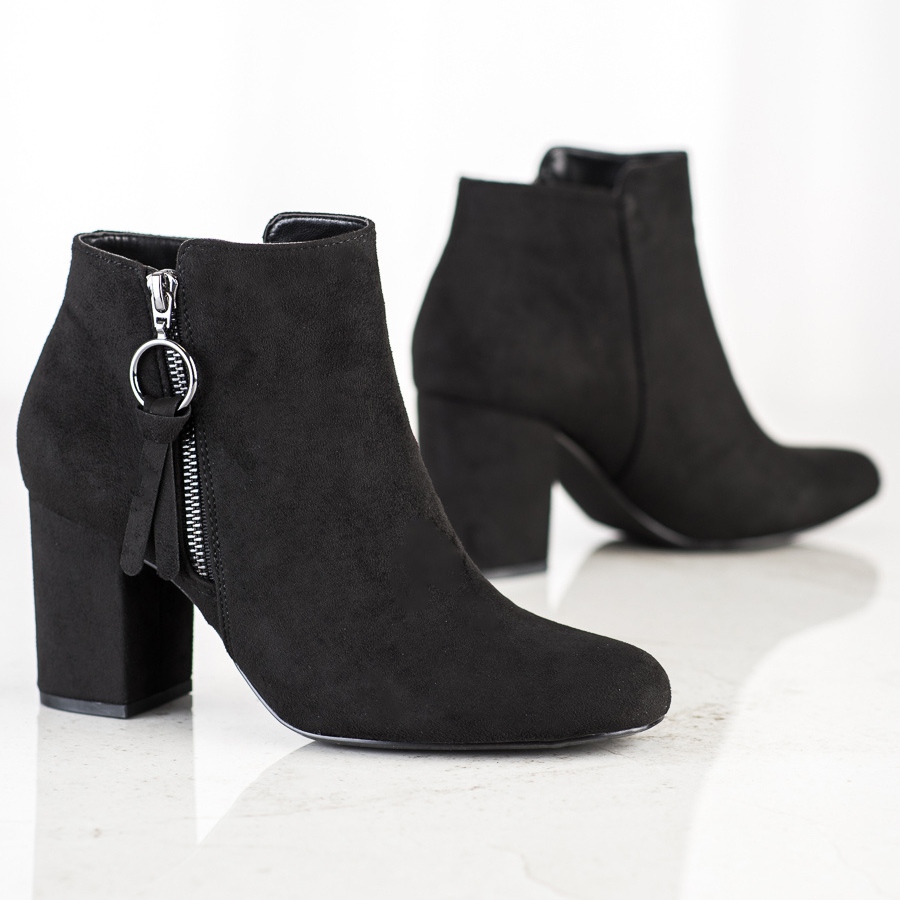 Tässä tyylikäs malli, joka varmasti täydentää vaatekaappiasi syys/talvikaudelle - mustat klassiset mokkanahkaiset korkeakorkoiset nilkkurit Goodin-brändiltä. Näissä ajattomissa naisten kengissä yhdistyvät rento ja elegantti tyyli, mikä tekee niistä täydelliset sekä arkeen että erikoistilaisuuksiin.