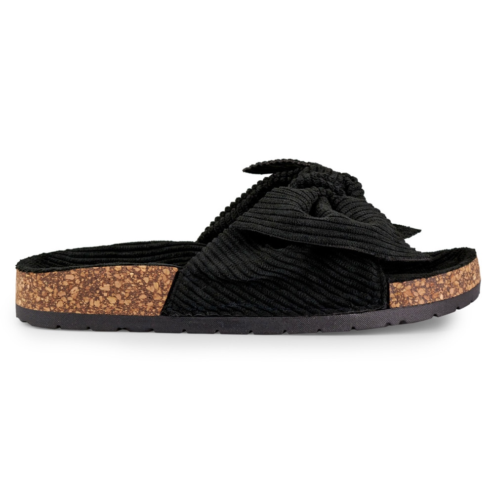 Inna marka Klassiset mokkanahkaiset mustat naisten tossut rusetilla