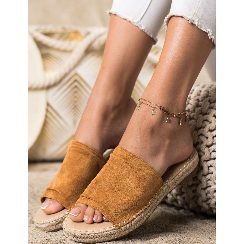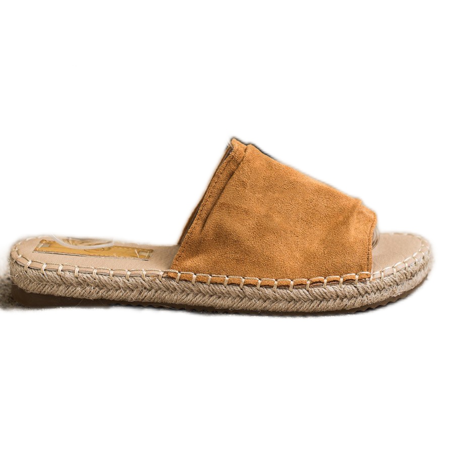 Varvastossojen sisäpuoli on vuorattu ekologisella nahalla, mikä takaa käyttömukavuuden koko päivän. Klassisen ruskean värin ansiosta nämä varvastossut sopivat helposti erilaisiin tyyleihin - sekä arkisoihin että elegantempiin. Täydellinen kävelylle, ostoksille tai ystävien tapaamiseen - nämä ovat varvastossut, jotka toimivat kaikissa tilanteissa.