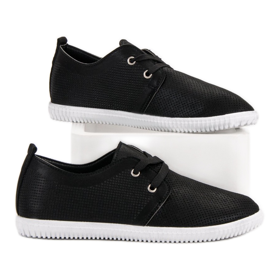 Super Mode Classic Black Shoes -kengät ovat ehdotus, joka rikastuttaa mitä tahansa rentoa tyyliä ja sopii täydellisesti jokapäiväiseen asuun. Ne ovat hyödyllisiä sekä kävelyllä että tapaamisissa ystävien kanssa. Siksi ne kannattaa ottaa mallistossasi nauttiaksesi mukavuudesta ja tyylikkäästä ulkonäöstä läpi kevät- ja kesäkauden. Sijoita luokkaan ja mukavuuteen - valitse Super Mode!